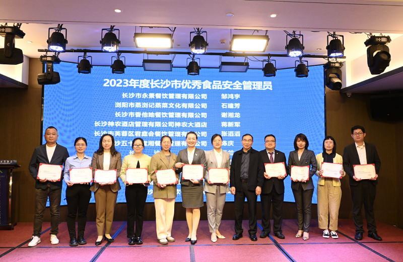 4月11日召開的長沙市飲食安全協會第二屆第三次會員大會暨年度表彰大會上,蒸瀏記獲評長沙市食品安全管理優秀餐飲企業和餐飲服務單位“誠信之星”企業兩項榮譽,并上臺接受頒獎。