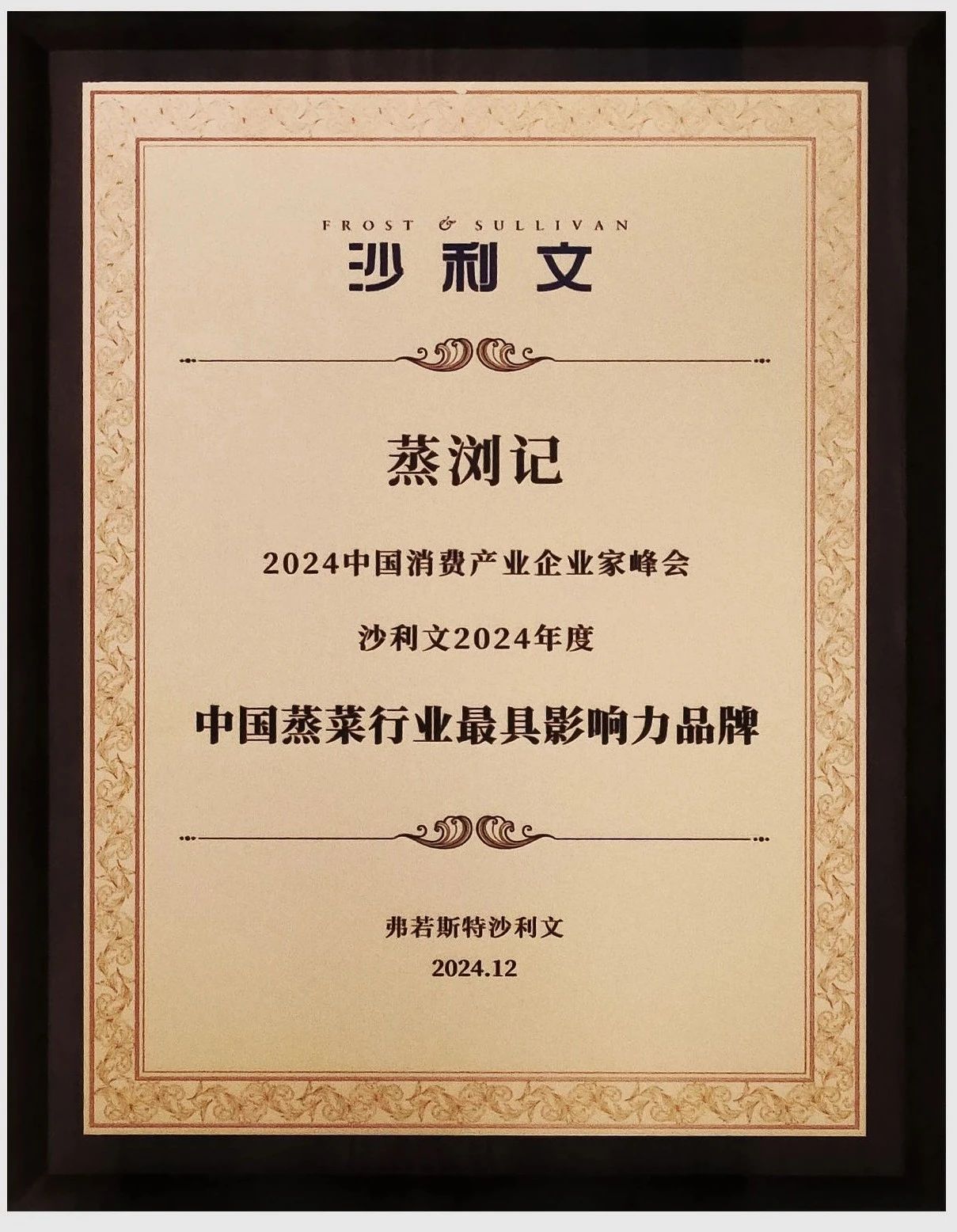 歷經(jīng)奮楫篤行的2024年,瀏陽蒸菜標(biāo)準(zhǔn)示范品牌蒸瀏記在歲末年終收獲了一份最沉甸甸的行業(yè)肯定——獲評“沙利文2024年度中國蒸菜行業(yè)最具影響力品牌”。